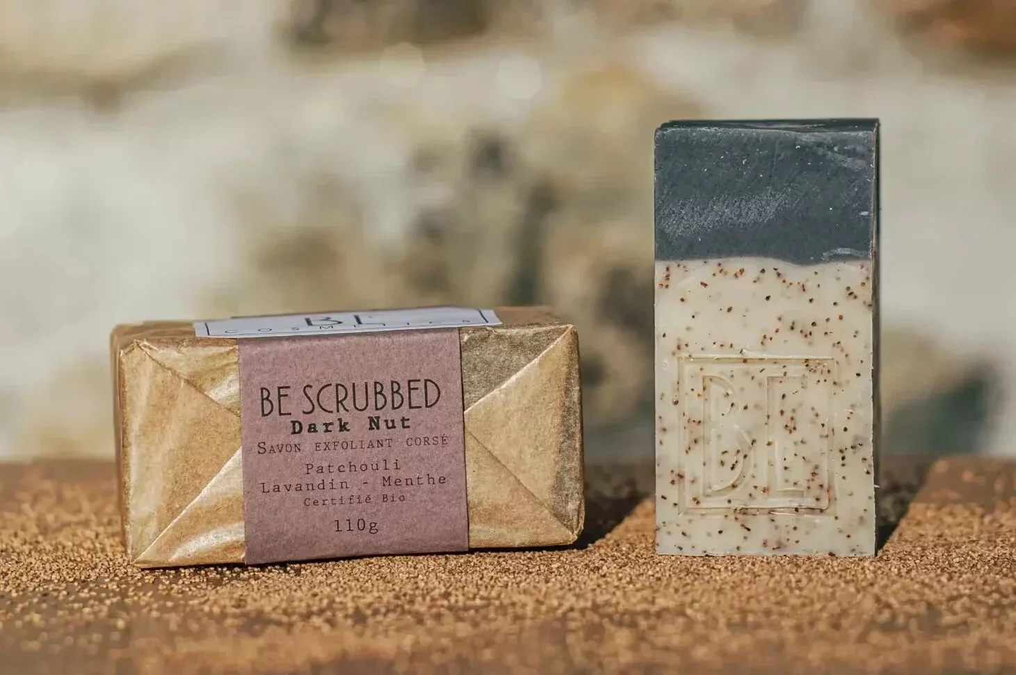 Ce savon solide exfoliant Dark nut est certifié bio. Il est idéal pour un nettoyage en profondeur. Il est fabriqué à partir de coques de noix, d’argile verte et de charbon purifiant. Ce savon est agréablement parfumé aux huiles essentielles de patchouli, de lavandin et de menthe.